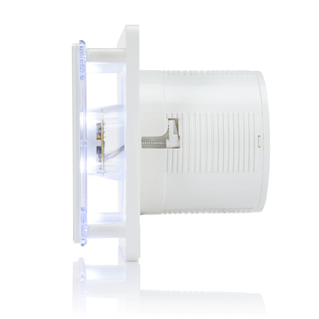 BFS125LT – Stille badkamerventilator met LED-verlichting en timerfunctie voor betrouwbare ventilatie met decoratieve sfeer en automatische uitschakeling in badkamers en toiletten.