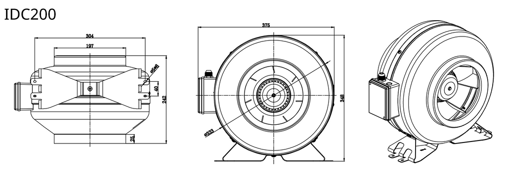 IDC200 – Inline centrifugaalventilator met hoge druk voor lange kanaalruns.