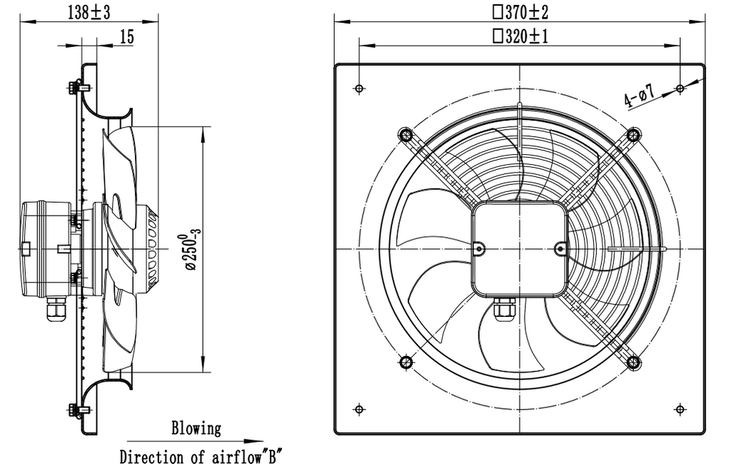 AXF250B – Axiale ventilator voor commerciële ruimtes, werkplaatsen en keukens.